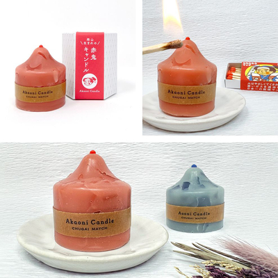 マッチ棒を芯にして鬼の角をイメージしたお洒落な青鬼キャンドル